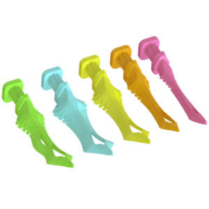 - Có nhiều kích cỡ (chiều cao) khác nhau (răng hàm màu xanh có các kích cỡ 5, 6, 7, 8 và 9mm, răng hàm màu cam có các kích cỡ 6, 7 và 9mm, và răng tiền cối màu đen có các kích cỡ 5, 6, 7, 8 và 10mm)